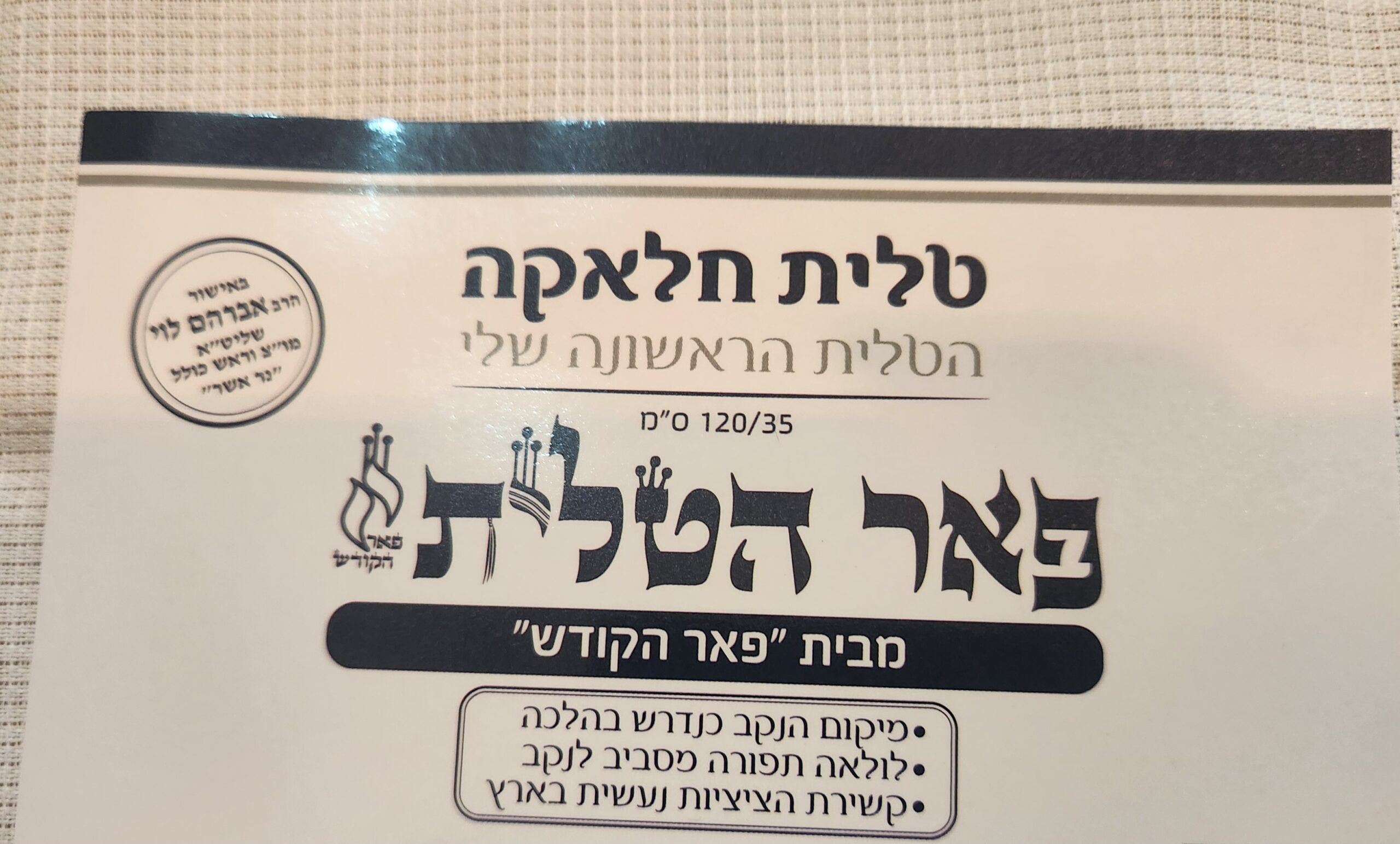 טלית ילדים מהודרת כשרות גבוהה  ציציות עבודת יד  בד תשבץ  פס כסף מהודר נגד החלקה אפשרות לרקמה בתוספת