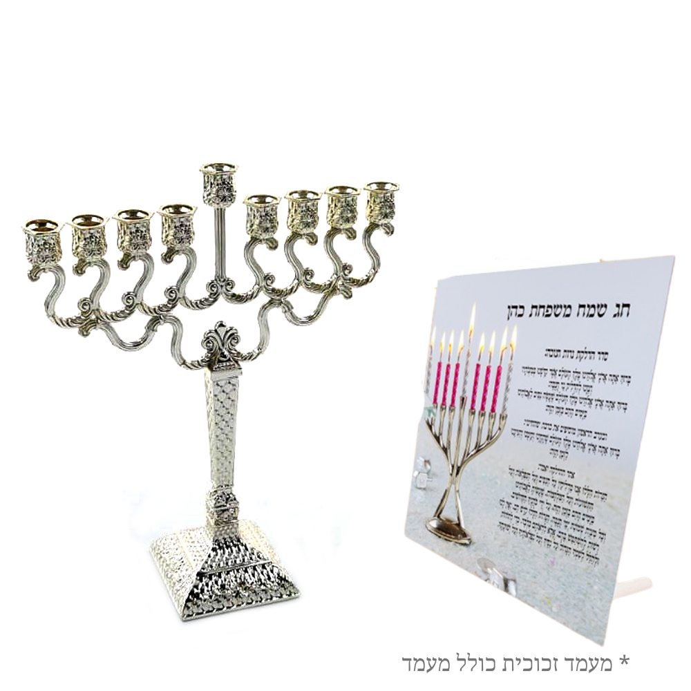 סט חנוכיית עיטורים מפוארת ומהודרת עם ברכת הדלקת נרות בהתאמה אישית