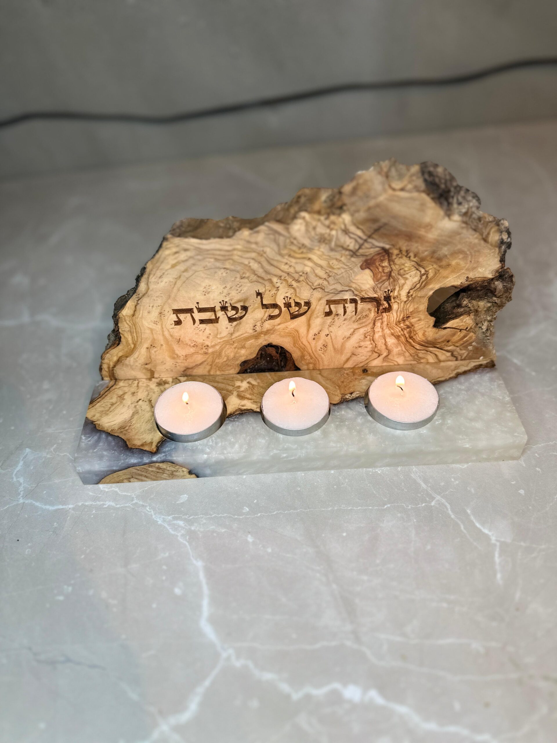פמוטי עץ מהודרים לנרות שבת מעץ זית איכותי ועמיד ובעבודת יד, המשלבים אומנות וטקסטורה חמה ואותנטית.